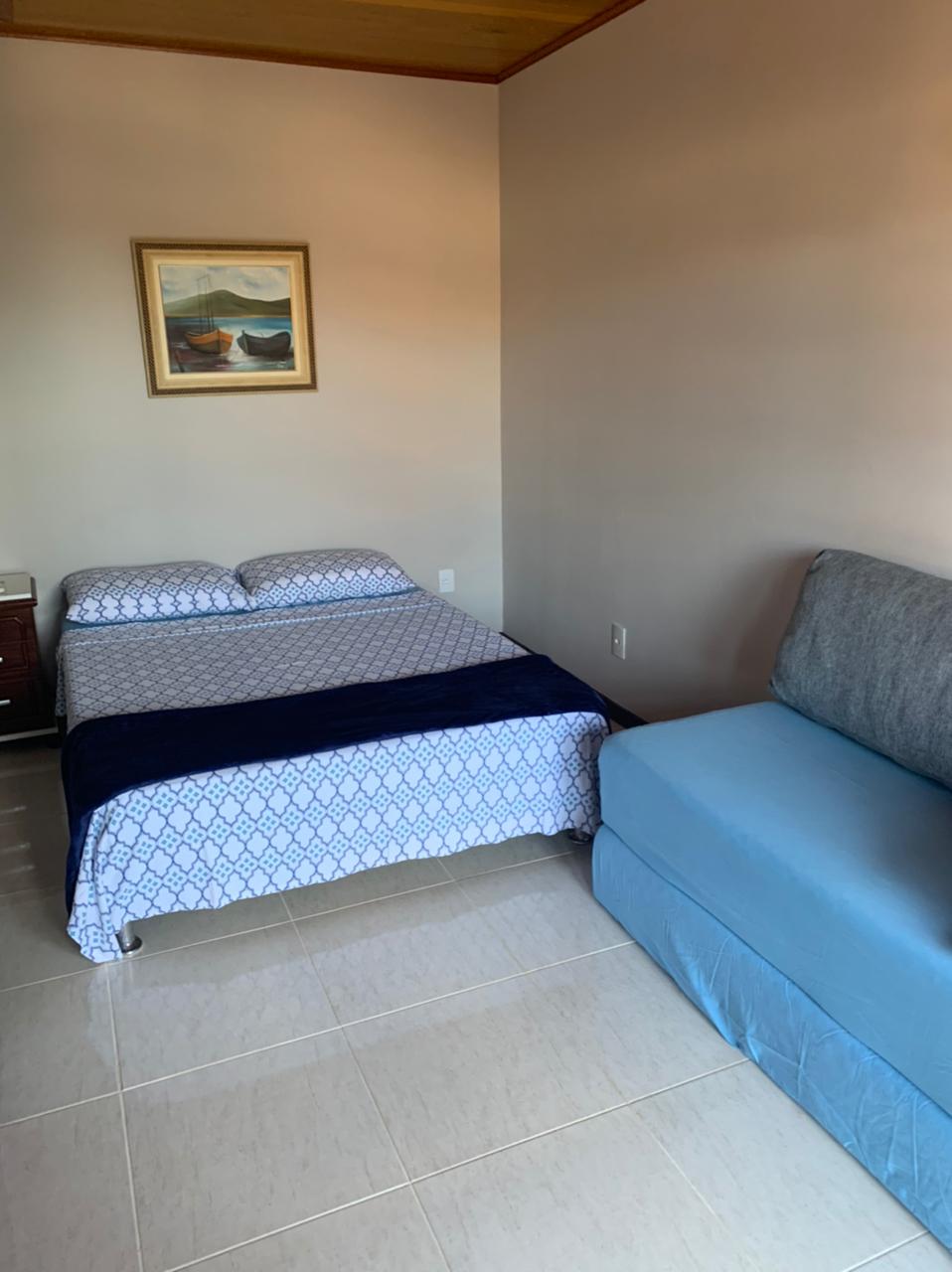 01 Cama de casal, Ar Condicionado, Roupa de Cama, Sacada com vista para montanha e para rua principal, Estante para guardar pertences, 01 Sófá cama |