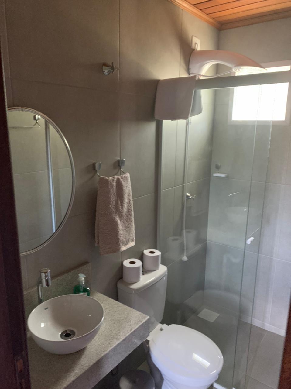 02 Banheiros (01 no piso inferior e outro no piso superior), Papel higiênico, Toalhas de rosto, Chuveiro |
